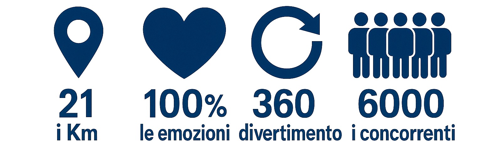 |  | 21 i Km , 100% le emozioni , 360° divertimento, 6000 i concorrenti e forse più… |